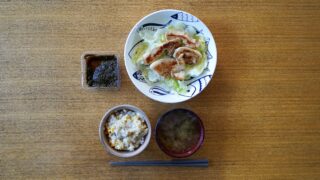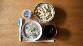 ②野菜の鍋スープ煮(白菜、大根、ニンジン、ジャガイモ、エノキ入り)【鍋スープ『贅沢なあごだし寄せ鍋』LIFE ブランド/桃宝食品(株)製を使用】