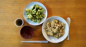 私ら夫婦二人だけとなると、汁物もインスタントになったりで、大体こんなふうになりがちです。まあしょうがないですよね。