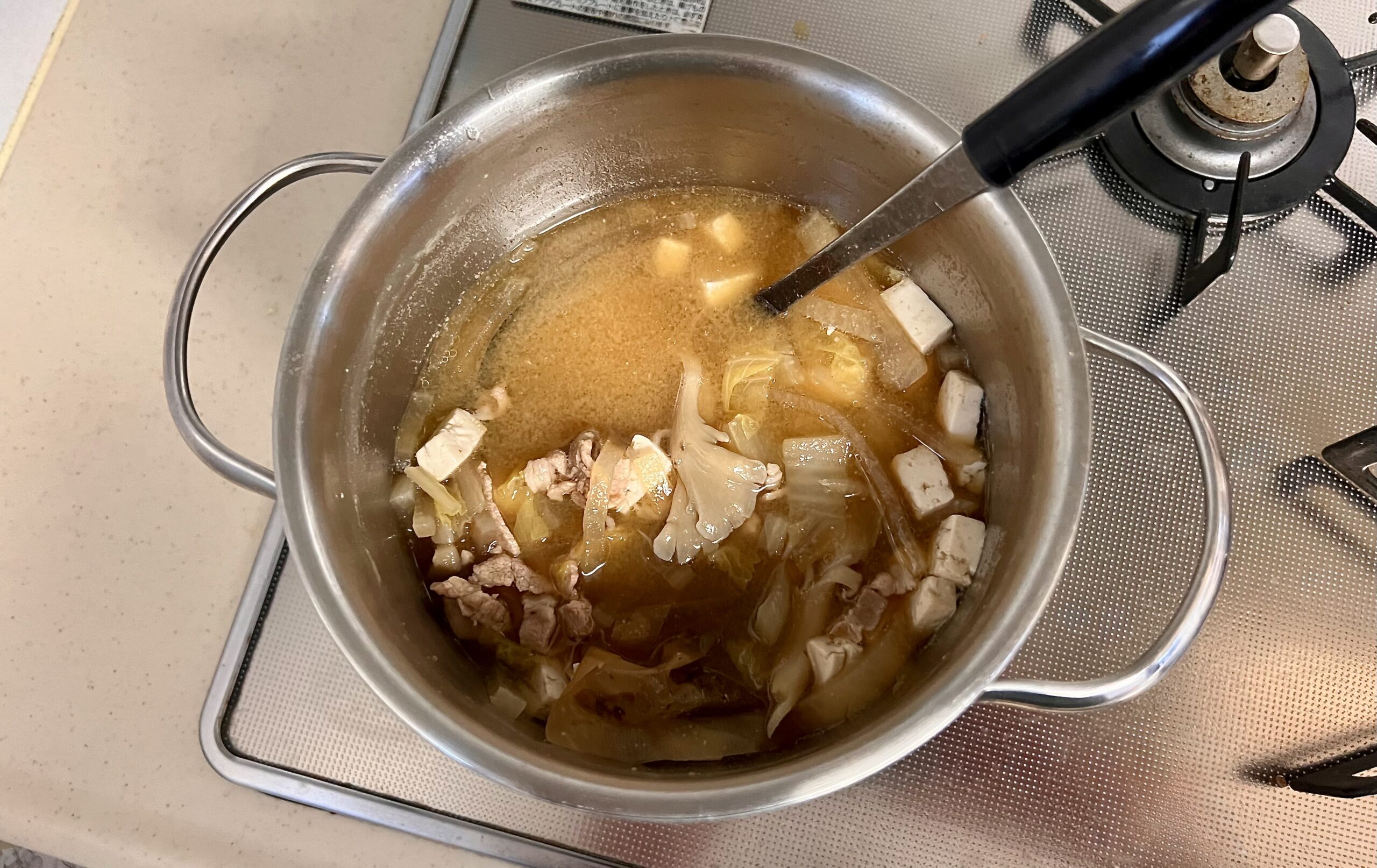 ⑤豚汁(豚バラ肉、大根、白菜、舞茸、豆腐入り)【味噌は秋田県横手市(株)ATS 販売/(有)新山食品加工場 製『糀味噌』(米麹みそ)】
