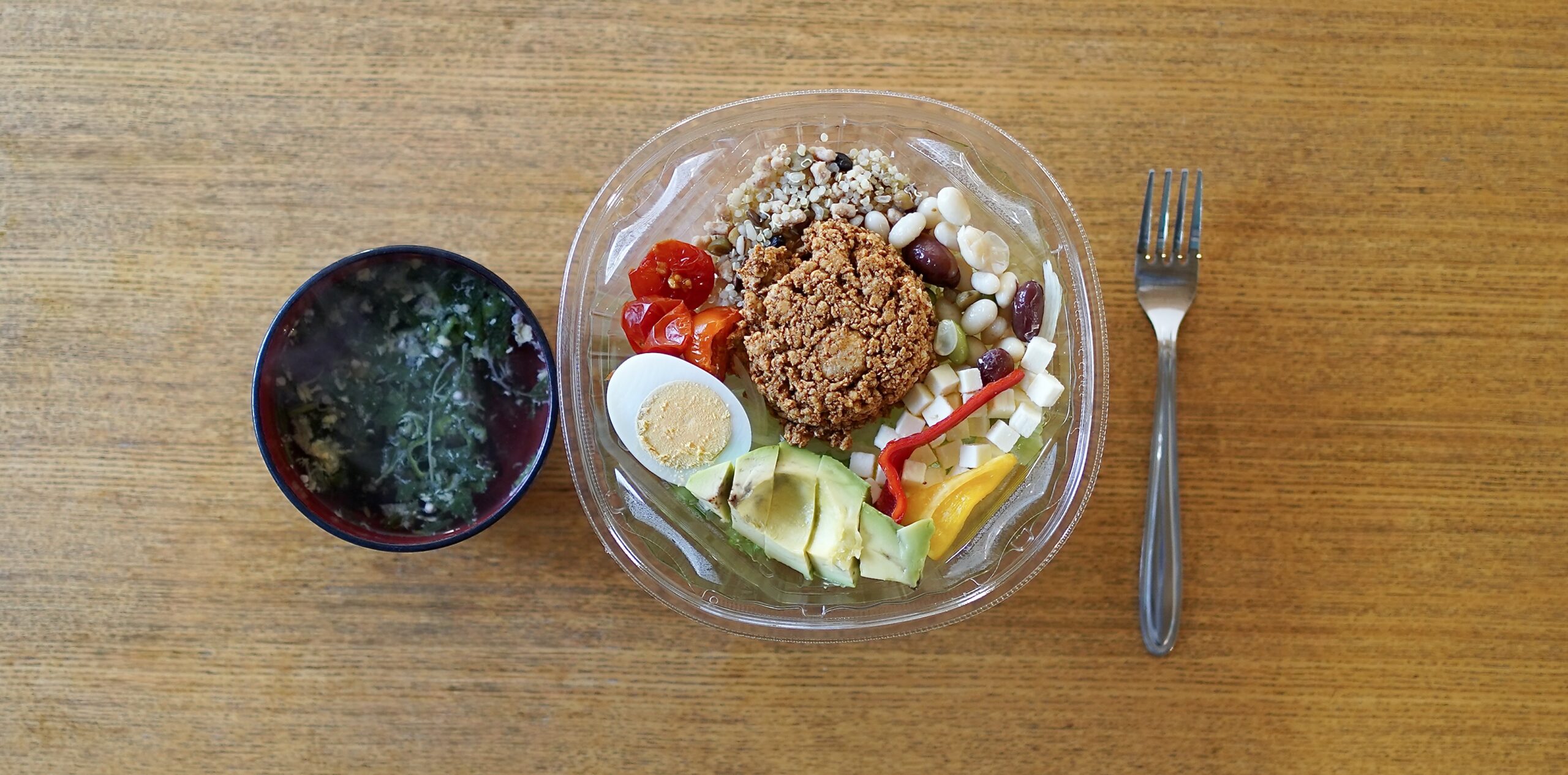 ちなみに、このサラダボックスがなんという名前なのかはわかりません。『サラダデリ MARGO』さんのHPを見てみても、名前は特に載っていないんですね。おそらく、オーダーでいろいろ選んだものだと思われます。でもボックスの下には十六穀米のようなご飯があって、なかなかボリューミーでした。