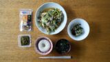 ①ざる蕎麦【『妻有そば』玉垣製麺所(株)製、つゆは『ストレートそばつゆ』セブンイレブン ブランド・ヤマサ醤油(株)製、薬味は万能ネギと長芋とろろ】