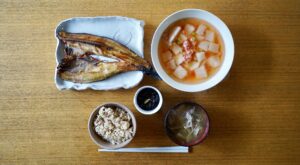 なんかいつもよりも品数が少ないようにも思いますが、3人で食べるのには十分です。