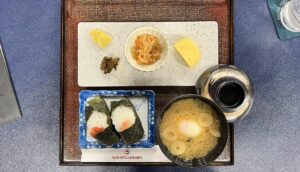 普段でしたら蕎麦にすることが多いのですが、今日はおにぎりにしました。特に理由はありません。それでもみそ汁の中に温泉卵が入っているのは珍しいですね。