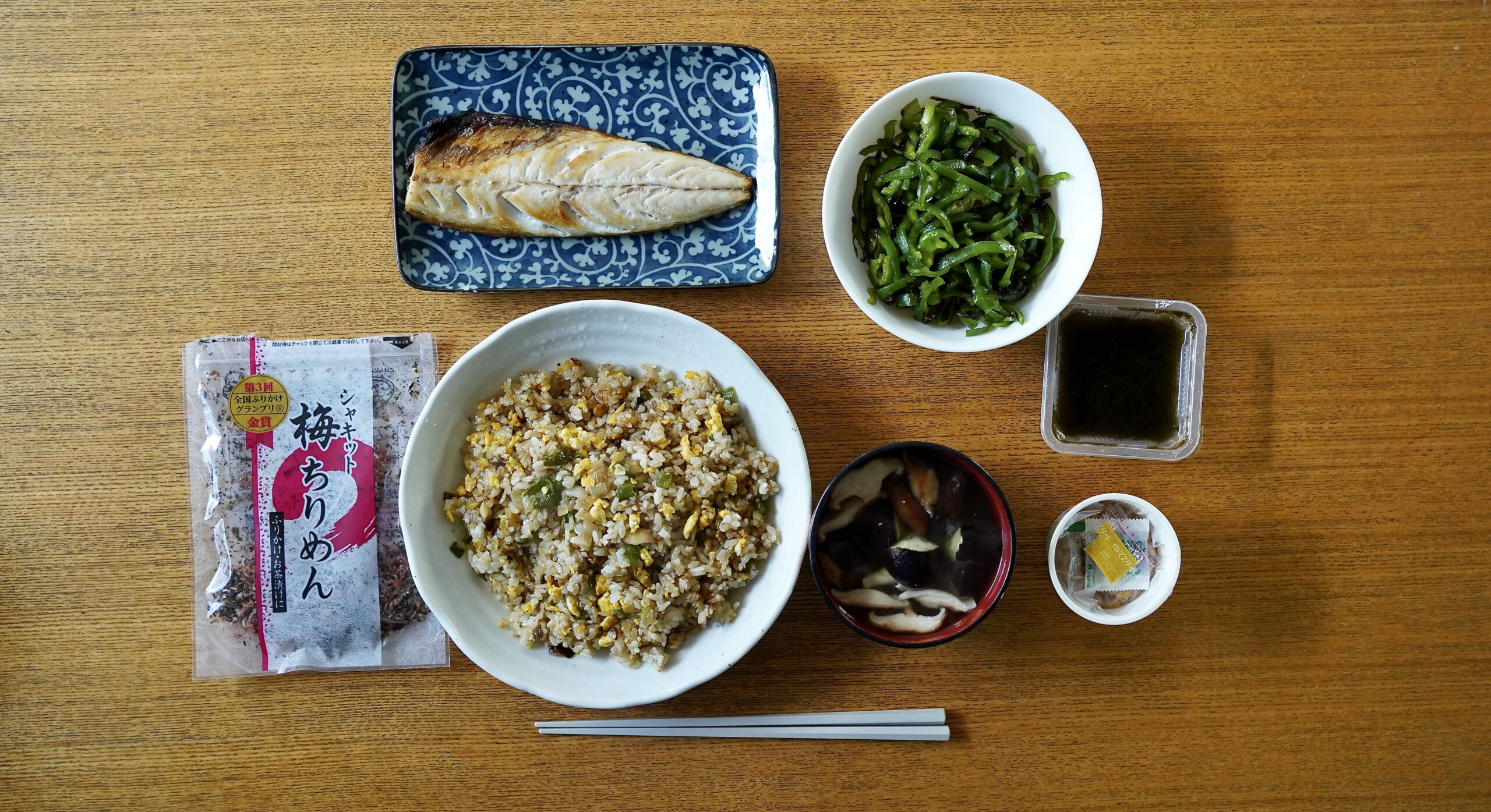実は今朝のチャーハンは、昨日の白ごはんの残りで作ったものです。通常我が家ではごはんは二合炊くのですが、私と妻とお義姉さんとで食べたら、微妙な量のごはんが残るんですね。そこで残った白ごはんで、お義姉さんが昨夜のうちにチャーハンを作っておいてくれました。そして、新たに二合の白ごはんをたいた訳です。