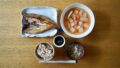 今朝なんか、ふりかけの『かつお』と『焼きほぐし鮭』が並んで、魚類のバリエーションも付けています。